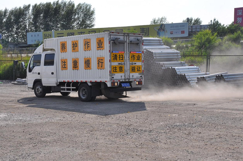 新研制的風力清掃車由主車和風機系統兩部分組成,高壓風機、發動機及附件部分均裝配在車廂以內,車尾翼的出風口部件置于車廂外部。經實測,這套輸出配置可以將質量小于1kg、直徑小于10cm的路邊雜物吹離路面,約4-6小時可完成一次單程保潔。該設備研發費低于市場同類產品平均售價,單臺費用降低10萬元;燃油費用節約30%;與人工清掃作業全年費用相比減少42萬元。風力清掃車比自吸式和前置滾刷式清掃車,結構簡單、故障率低、維修方便快捷。作業時,警示標識醒目且不占用行車道,作業人員的人身安全系數有了極大提高。該設備已投入日常保潔作業,取得了超出預期的效果,并已將其中的兩項發明申請了專利。